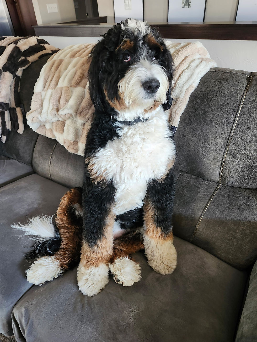We are almost home with Zorro we named him Benny! We were talking to your wife about my parents dog they got from you guys 2 years ago… she wanted some pics so here they are feel free to share! His name is Jax his mom was Abby and dad was Tramp. —Clay & Leah Campbellsport, WI